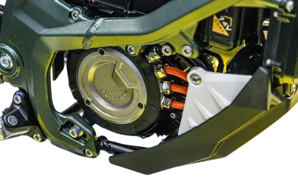 Der für die Ultra Bee 2024 speziell entwickelte Motor von SUR-RON definiert Leistung neu in der 125ccm-Klasse. Mit einer maximalen Leistung von 17 PS (12.5 kW) bietet dieser luftgekühlte Motor eine kraftvolle und dynamische Fahrt, die selbst die anspruchsvollsten Gelände meistert. Dank des innovativen, mehrstufigen Koaxialgetriebes wird die Kraft effizient und direkt übertragen, was nicht nur für beeindruckende Beschleunigung sorgt, sondern auch in kritischen Fahrsituationen für höchste Sicherheit und Kontrolle steht. Egal ob steile Anstiege oder herausfordernde Trails, der Motor der Ultra Bee 2024 ist bereit, jedes Hindernis zu überwinden und Fahrspaß auf ein neues Niveau zu heben.